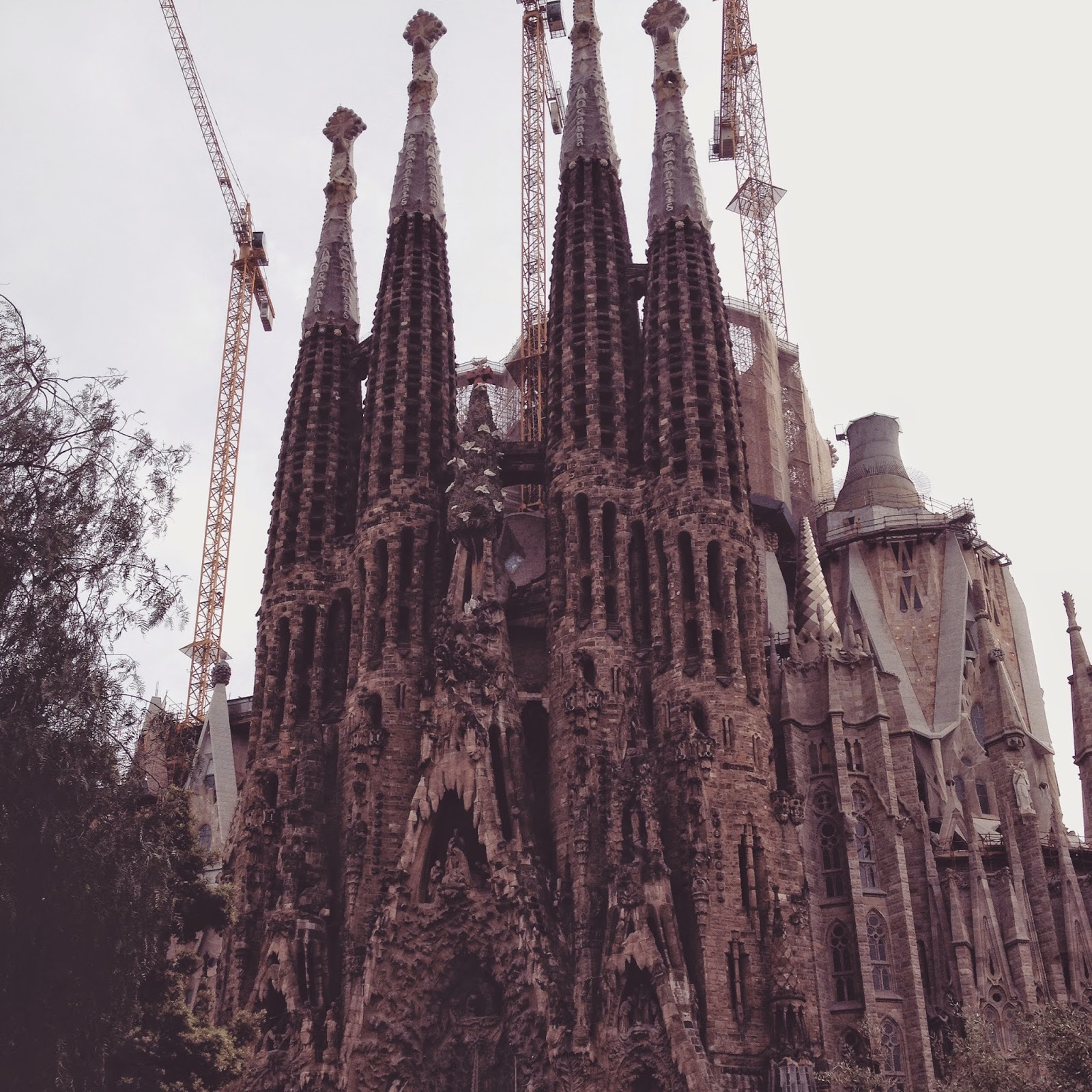 Depois de um belo passeio pelo parque voltámos a apanhar o autocarro, mas desta vez saímos na estação de metro Diagonal, onde apanhámos a linha azul e saímos na estação Sagrada Família. Como tínhamos comprado os bilhetes pela internet e tinham hora marcada fizemos tempo no jardim em frente à igreja, a contemplá-la.