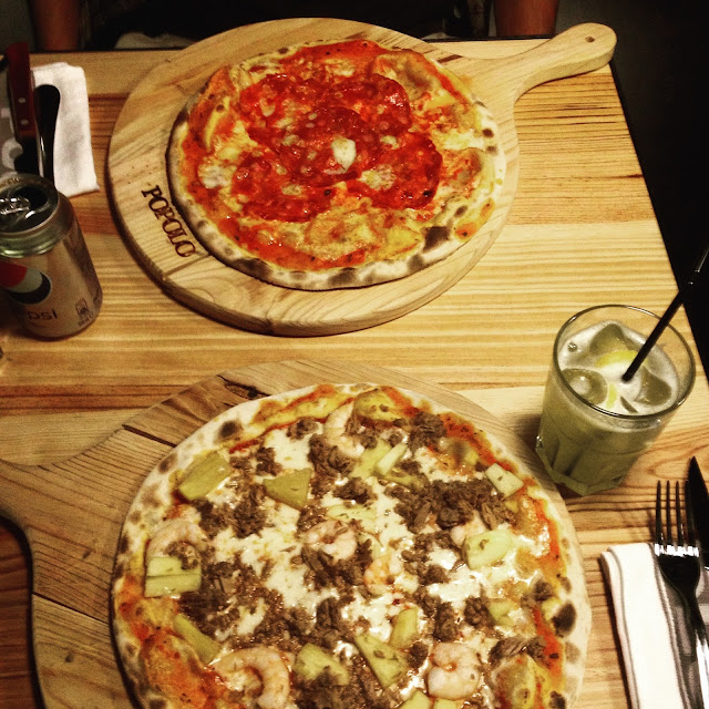 Como nos apetecia mesmo comida italiana decidimos deixar os hambúgueres de lado e pedir pizzas. A oferta não é muita, havendo apenas 8 pizzas à escolha. Eu escolhi a Enamorata (mozzarella, molho de tomate, camarão, abacaxi e atum) e ele a Diavola (mozzarella, molho de tomate e salame picante vetriccina calabria). Enquanto esperávamos pelo nosso pedido admirámos o espaço: grande e espaçoso, com uma decoração moderna.