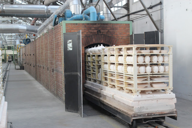Na fábrica descobri que há peças que demoram um dia e meio a serem feitas, vi as peças de loiça a serem revistadas uma a uma (não podem ter defeitos!), observei artistas a pintarem pratos e quase que me senti mal com o calor que se fazia sentir ao pé dos fornos.